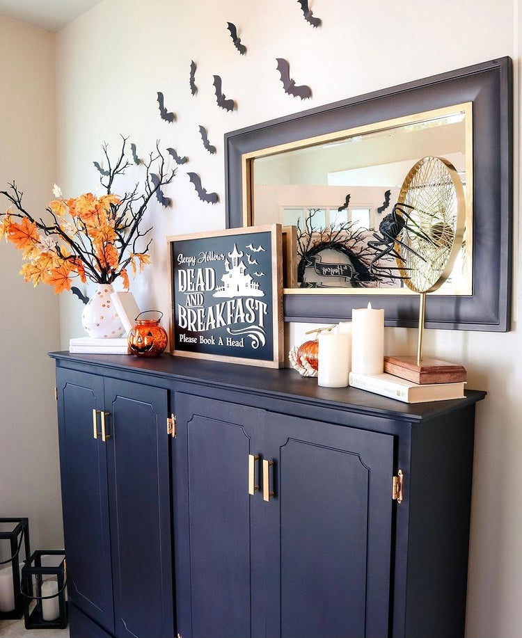 You have to read this one out loud because it's too funny. It'll catch you off guard, for sure! This sign has a stark contrast with the black (instead of white) background of many of our signs and white lettering (instead of the usual black). We love the spooky look of it and we can't wait to see how YOU style it! Check out our photos to see how Michelle with Practical Perfection styled hers. So spooky and cute!