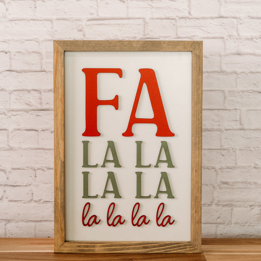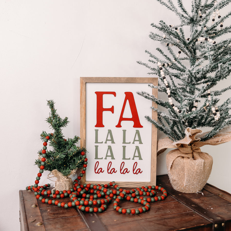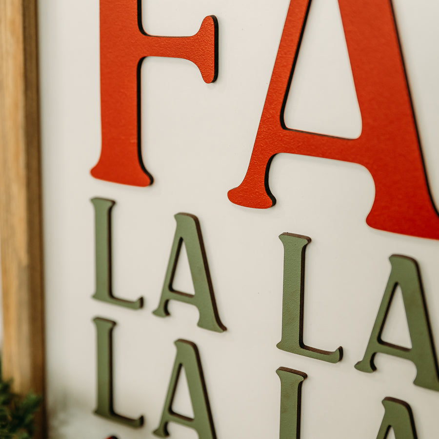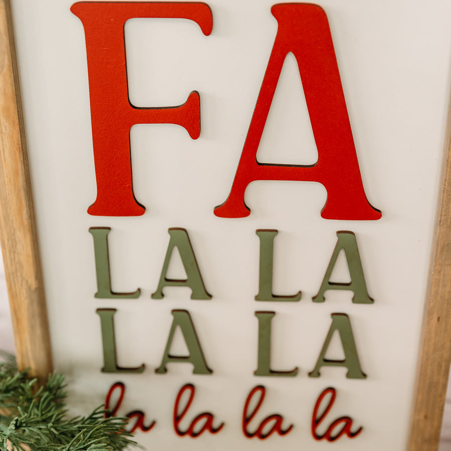 Fa La La La La Christmas Sign – 11x16 Inches – Red & Olive Green Lettering – Holiday Decor