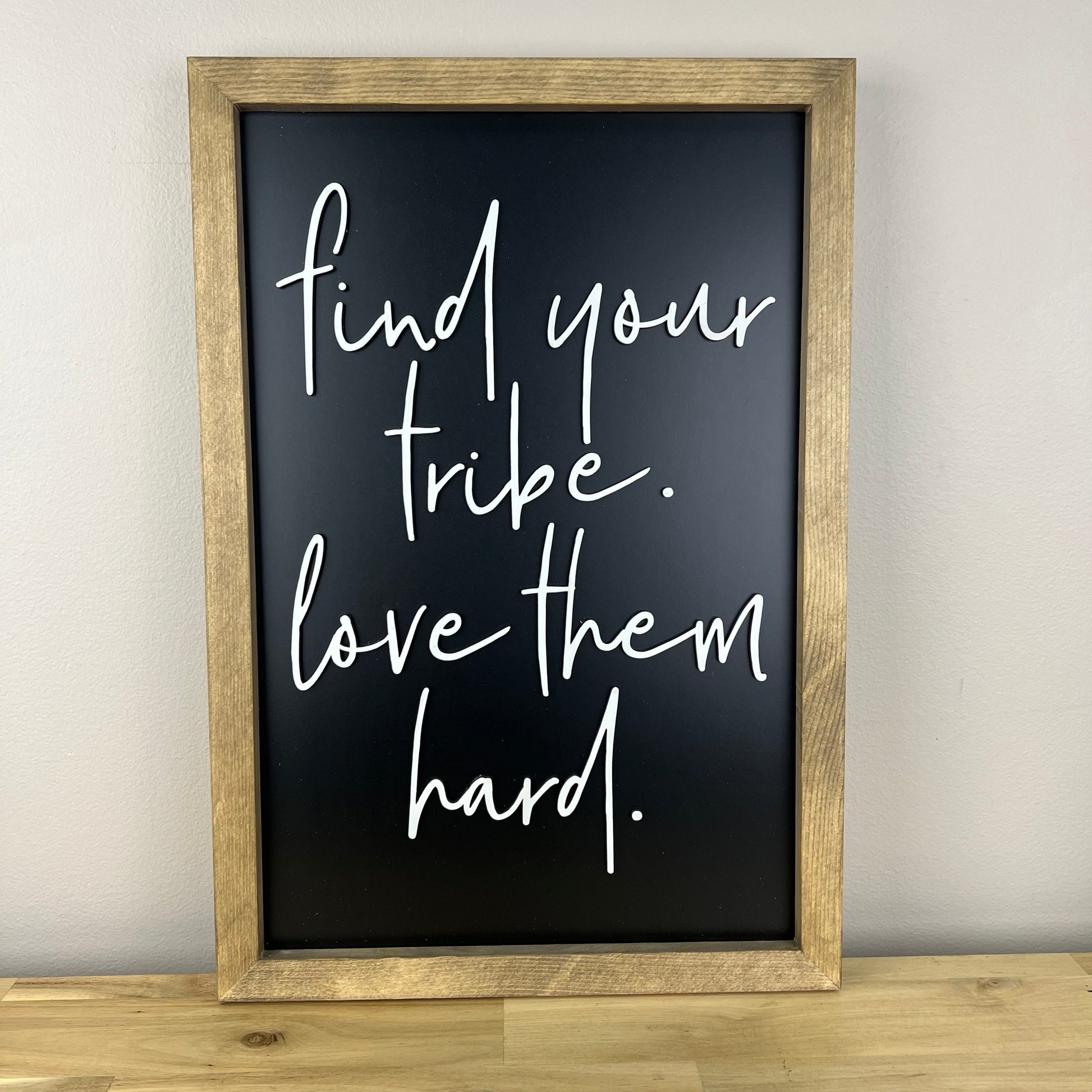 Find Your Tribe Love Them Hard | 11x16 inch Wood Framed Sign | Black Background