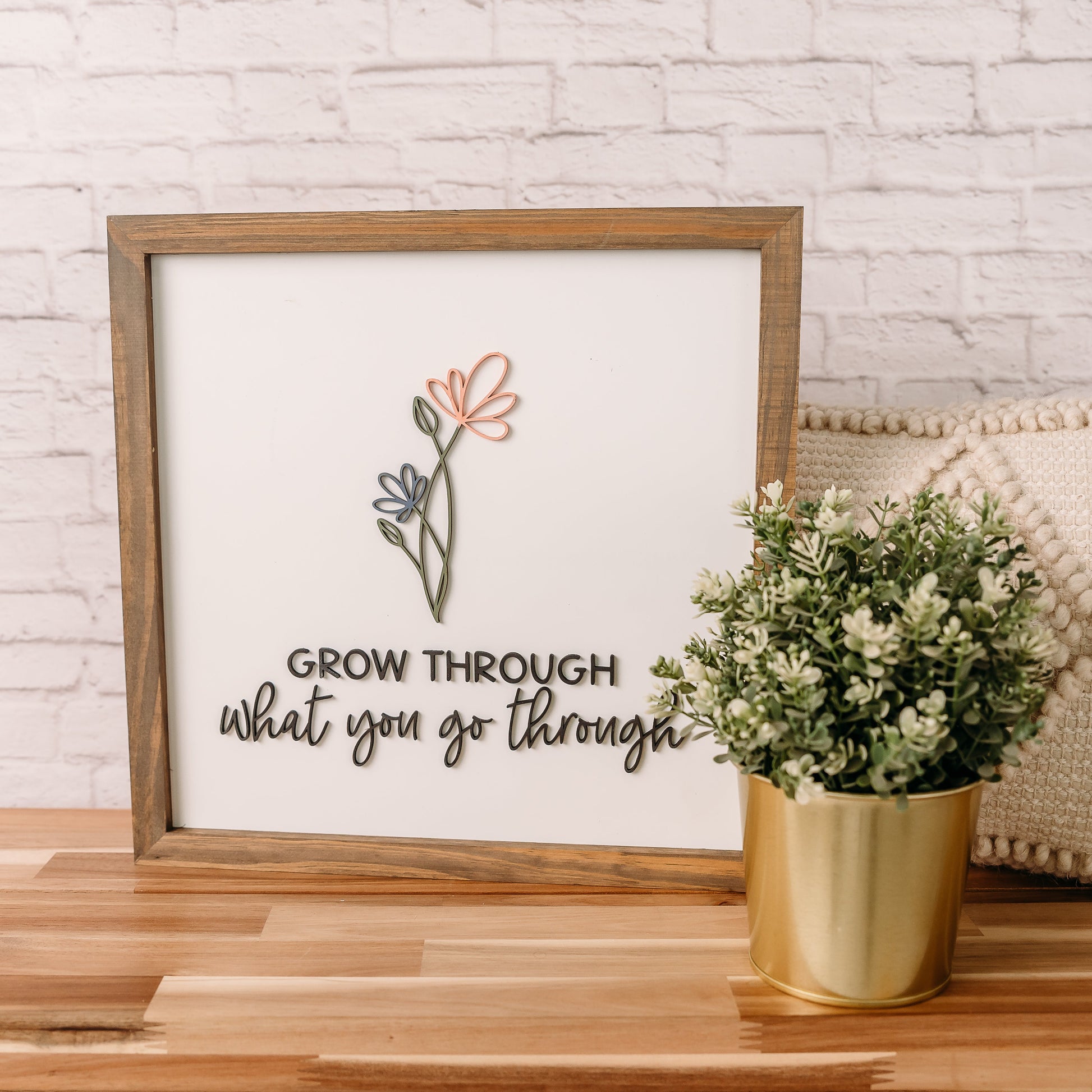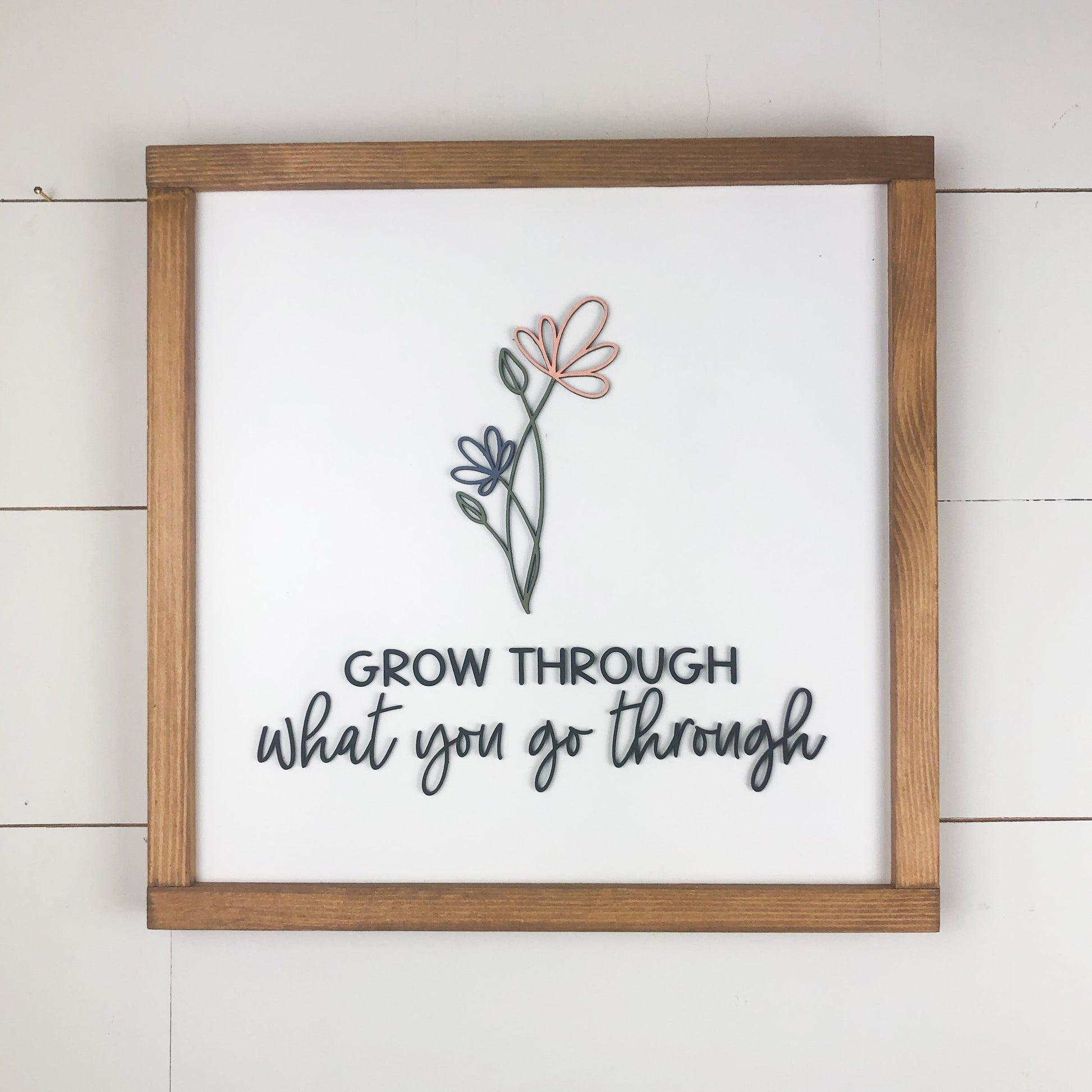 This beautiful message, to grow through what you go through, is good for all of us to hear. Sometimes it can be easy to wish our experiences away, especially when they're challenging and make us stretch. This beautiful sign is a perfect reminder that although we maybe going through hard things, that we will become better and more refined, if we let it.