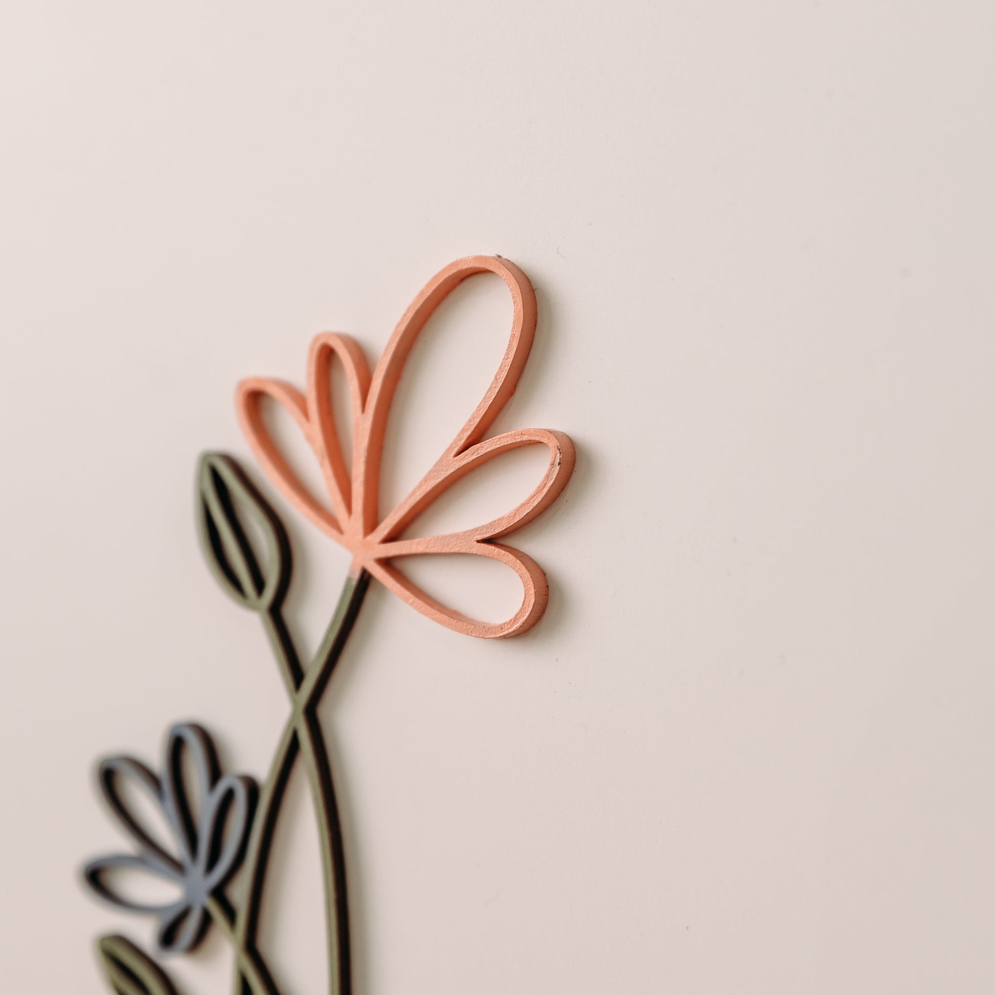 Muted pink, sage green, and purpley-blue colors on the flowers