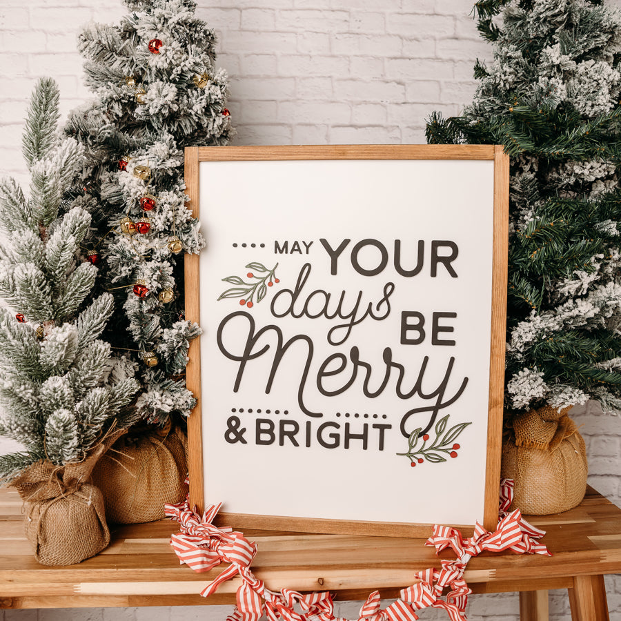 May Your Days Be Merry & Bright Sign – 17x21 Inches – Black Background with Red, Green & Black Lettering – Christmas Decor